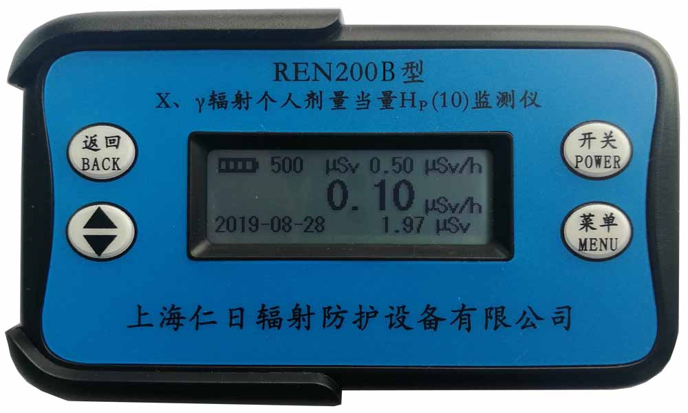 REN200B型X、γ辐射个人剂量当量HP(10)监测仪(简称:个人剂量报警仪)内置高量程盖格计数管为探测器,主要用来监测各种放射性工作场所的X、γ以及硬β射线的辐射,具有较宽的测量范围。能显示工作场所的剂量当量率和累积剂量,更换电池时,日期及累积数据能永久保存。可选配RenRiPersonal个人剂量管理软件,该软件可存储多个人的历史数据,能记录日累积、月累积、年累积、辐照时长、计算平均剂量率、扣除或不扣除本底辐射,且以文字和图谱的方式展现数据。广泛应用于核电站、加速器、钢铁、化工、同位素应用、工业X、γ无损探伤、放射医疗、钴源治疗、γ辐照、放射性实验室、核设施周围环境监测等领域中的工作人员进行个人安全防护监测及放射性提示。